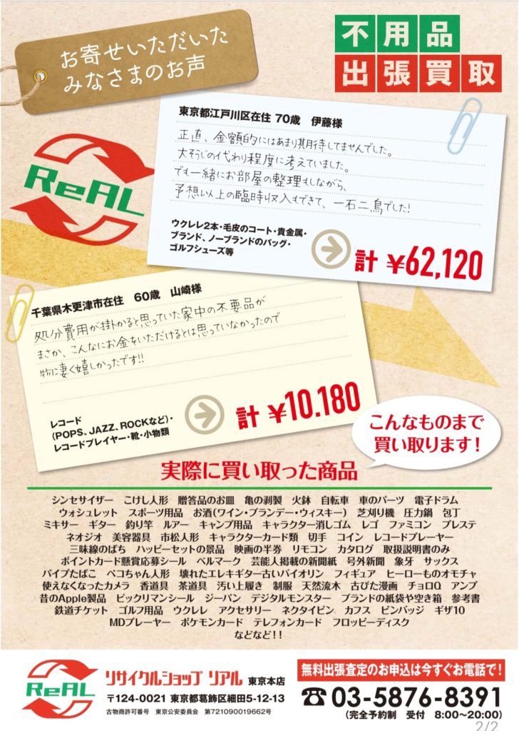 「こんな物でも売れる?」とご相談いただくケースも多く、捨てようとしていた物が買取できた事例も多数あります。