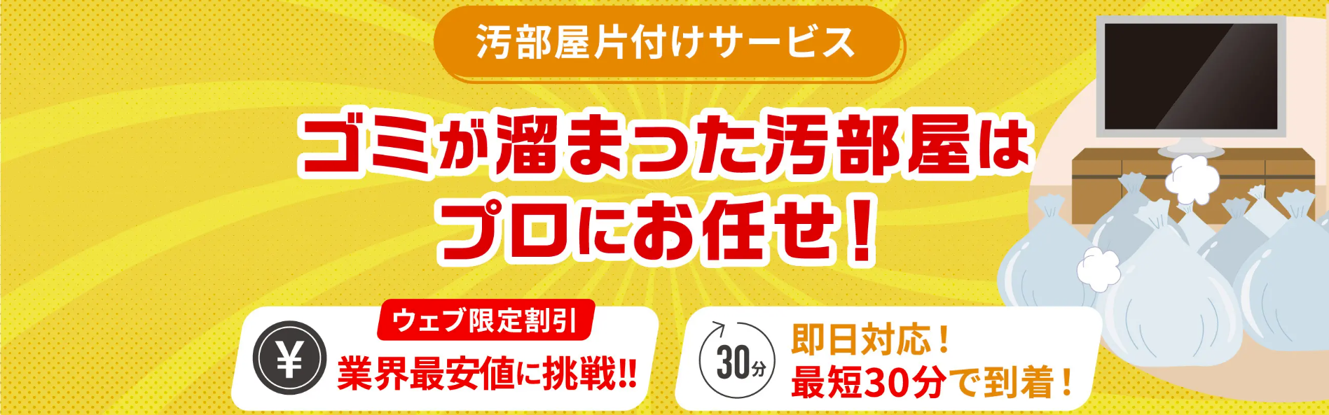 引越しやリフォーム、遺品整理など、大量の不要品を処分したいときは私たちにお任せください!また、自分の手では運べない粗大ゴミの処分も、お手伝いさせていただきます。当社では不要品の買取サービスも行なっておりますので、価値のある品につきましては、その場で現金買取にも対応させていただきます!